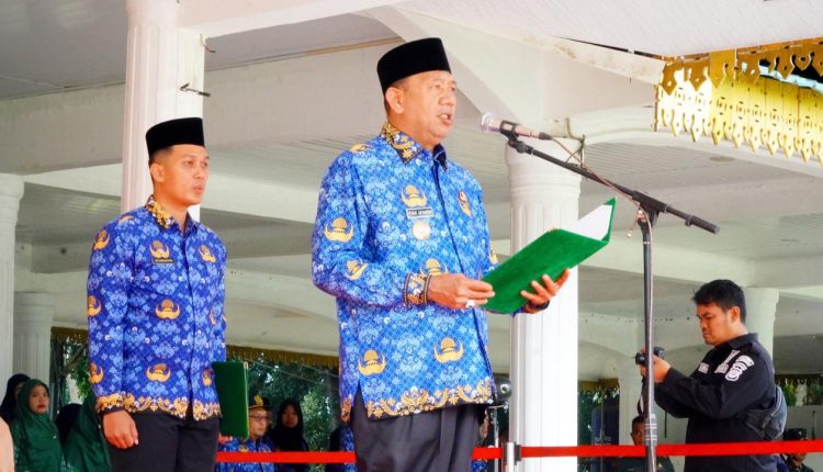 Bupati Langkat H. Syah Afandin, SH memimpin upacara bendera peringatan Hari Sumpah Pemuda ke-97 Tahun 2025 di Alun-alun Tengku Amir Hamzah Stabat, Selasa (28/10/2025).