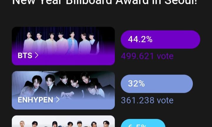 Update Hasil Terkini, Minggu 7 Desember 2025, BTS Masih Kuasai Voting New Year Billboard Award 2025