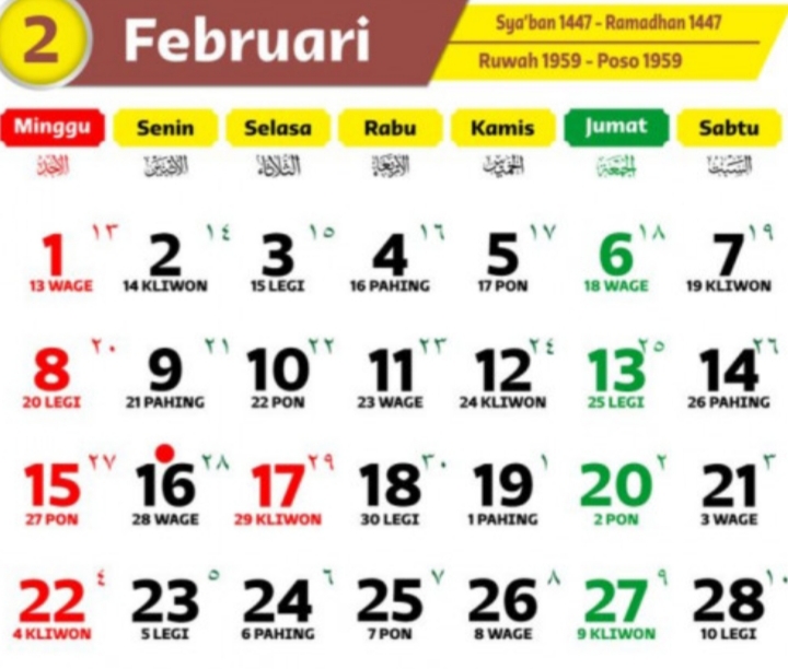 Berikut ini akan diulas kalender Jawa hari ini, Senin 16 Februari 2026, lengkap pasaran, weton, dan watak hari menurut perhitungan tradisional Jawa.