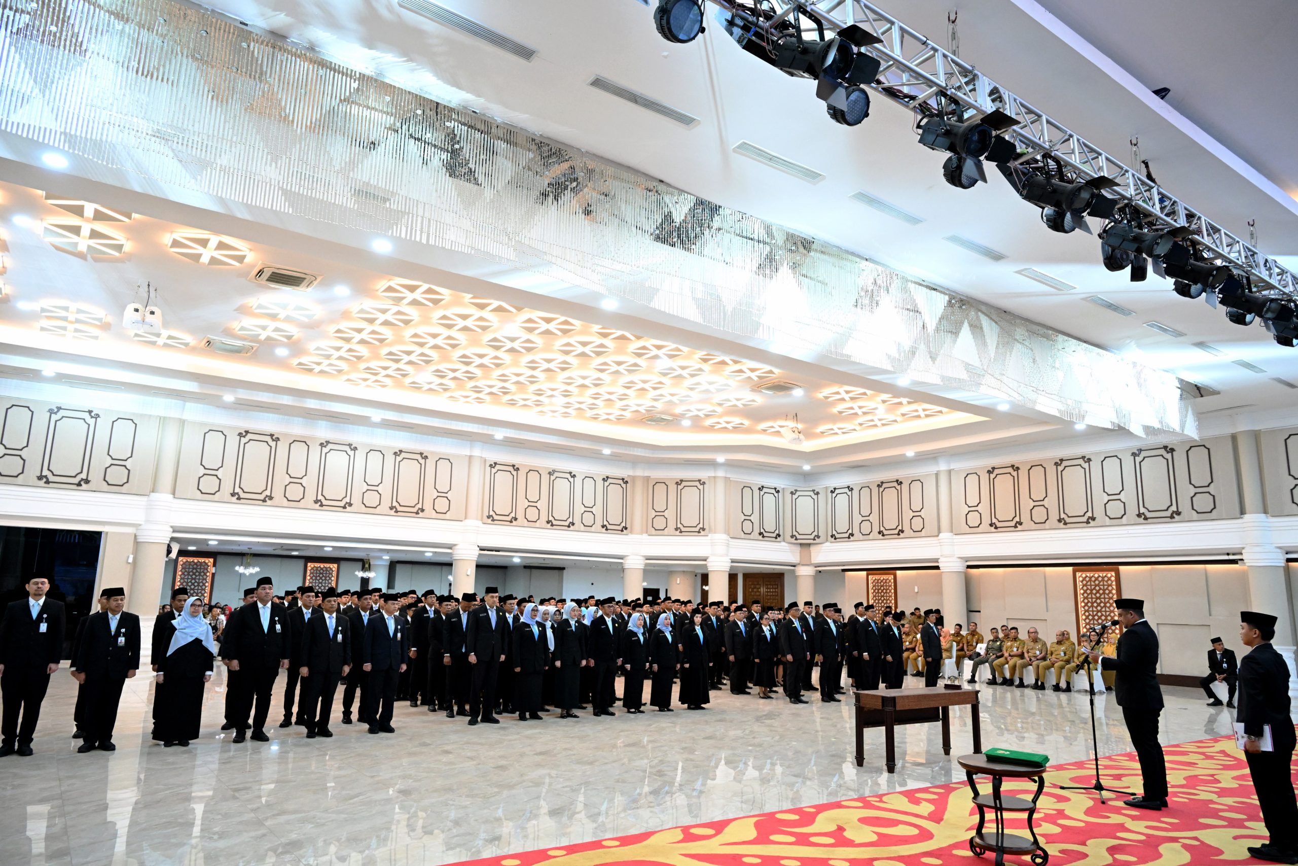 Adapun jumlah pejabat yang dilantik sebanyak 308 orang, terdiri dari 11 pejabat pimpinan tinggi pratama, 117 pejabat administrator, dan 180 pejabat pengawas.