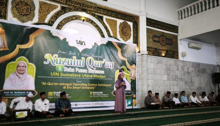 Medankinian.com, Medan – Suasana Ramadan terasa semakin khidmat di lingkungan Universitas Islam Negeri Sumatera Utara (UINSU) Medan ketika civitas akademika berkumpul dalam kegiatan peringatan Nuzulul Qur’an yang dirangkaikan dengan buka puasa bersama.
