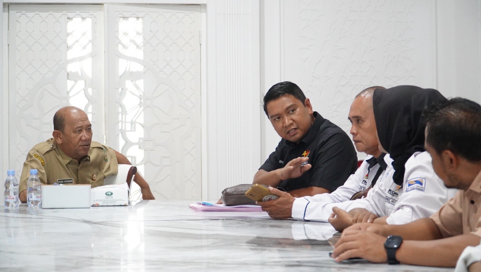 Medankinian.com, Langkat – Bupati Langkat, H. Syah Afandin, SH menerima audiensi dari Pengurus Indonesia Taekwondo Fun (ITFun) Propinsi Sumatera Utara, InOrga yang bernaung di bawah Komite Olahraga Masyarakat Indonesia (KORMI) dalam rangka membahas pengembangan pelatihan olahraga taekwondo di lingkungan sekolah di Ruang Kerja Bupati Kantor Bupati Langkat – Stabat, Selasa (7/4). Audiensi tersebut berlangsung dalam suasana hangat dan penuh semangat untuk memajukan olahraga sejak usia dini di Kabupaten Langkat.