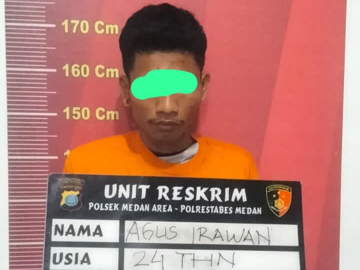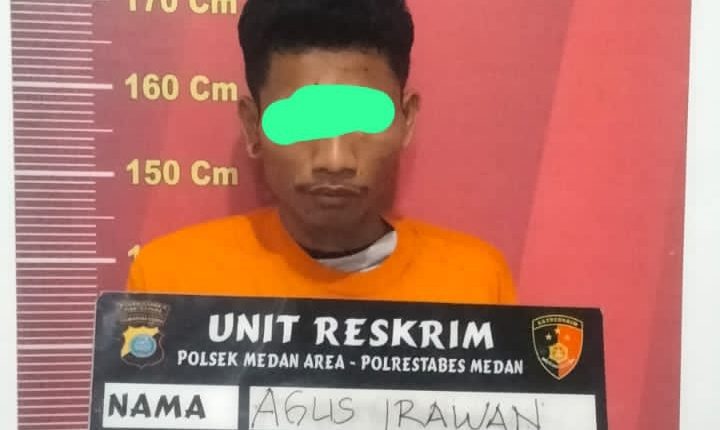 Tersangka adalah, Agus Irawan (24), warga Jalan Seto Gang Kijang Kelurahan Tegal Sari II Kecamatan Medan Area.